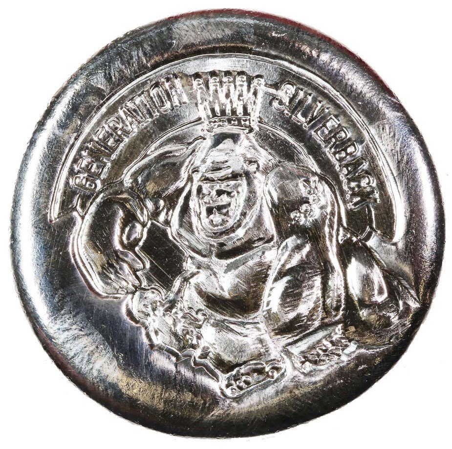 Introducing the stunning 10oz .999 Silver Round Bar Generation Silverback Gorilla Design! Crafted from pure silver with a remarkable .999 purity, this bullion bar is the perfect addition to any precious metals collection. Created by renowned designer Silverback Precious Metals, this bar features an intricately detailed and captivating Generation Silverback Gorilla design.