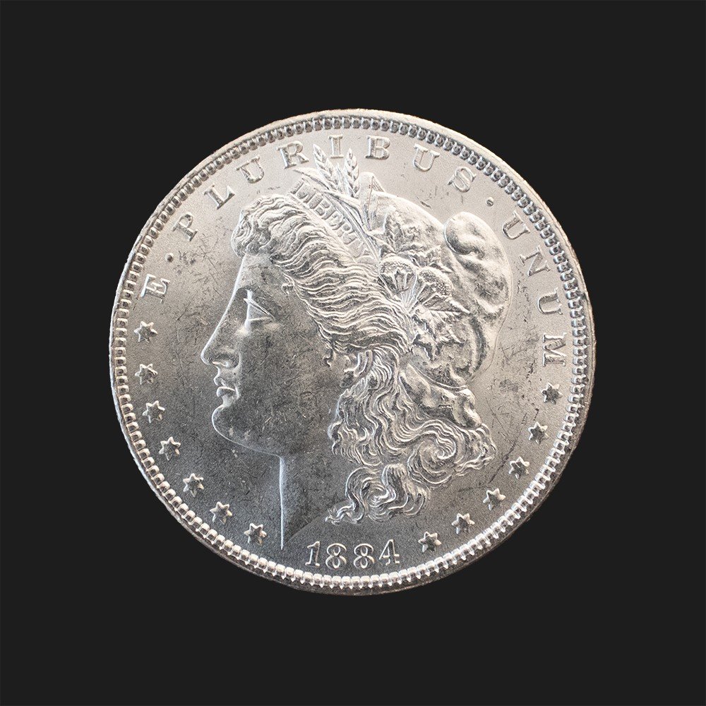 The 1884 $1 Morgan Silver Dollar MS64 coin is a highly sought-after collectible that showcases the beauty and craftsmanship of the late 19th century. This particular coin is graded MS64, indicating that it is in near-perfect condition, with only minor imperfections visible under magnification.