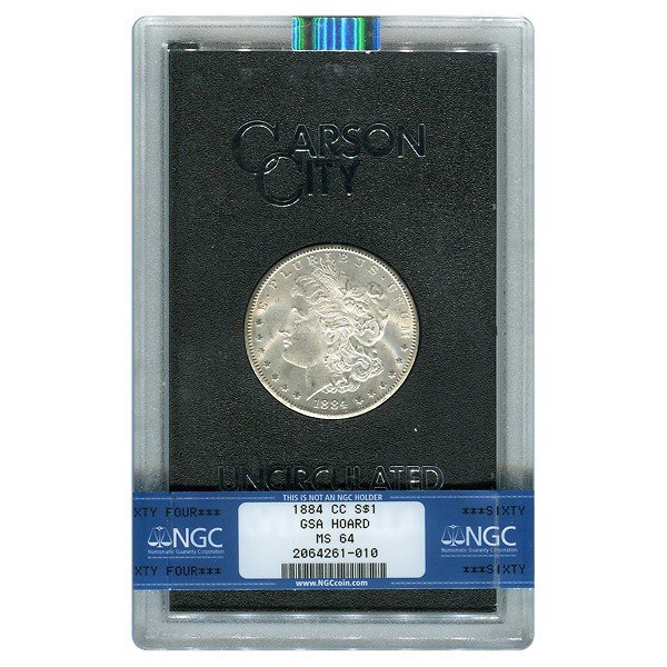 The 1884 CC $1 Morgan Silver Dollar is a rare and highly sought-after coin for collectors. Made from 90% silver and certified by NGC and GSA, this coin is guaranteed to be of the highest quality. It comes in an original GSA protective slab with a nice box, adding to its value and appeal.