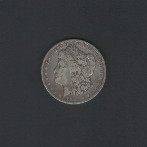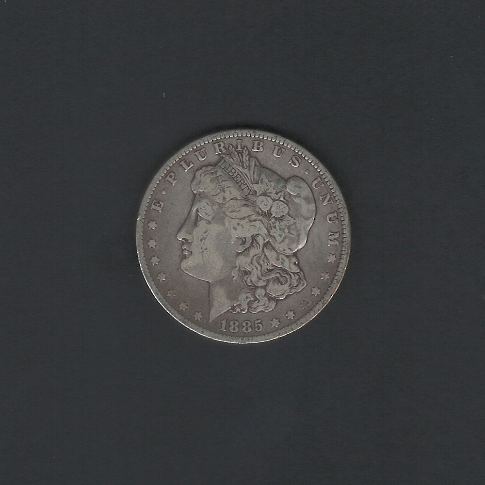 The obverse of the coin features a portrait of Lady Liberty, wearing a crown with the word "Liberty" inscribed on it. She is surrounded by stars, representing the original 13 colonies. The reverse displays an eagle clutching arrows and an olive branch, symbolizing commerce and peace. The coin's date, 1885, is prominently displayed at the bottom.