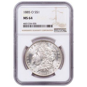 The Morgan Silver Dollar is known for its intricate design and connection to American history. This particular coin was minted in 1885 and bears the "O" mint mark, indicating it was produced at the New Orleans mint. Its high grade of MS64, certified by NGC, adds to its value and collectability.