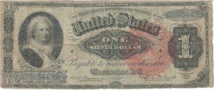 The 1886 $1 Silver Certificate Martha Washington Note is a historic piece of American currency. This particular note is unique because it features a portrait of Martha Washington, making it the only silver certificate in US history with a woman's portrait. The blue seal and serial numbers on the note add to its aesthetic appeal.