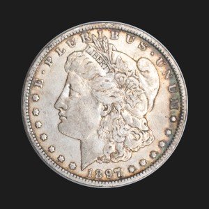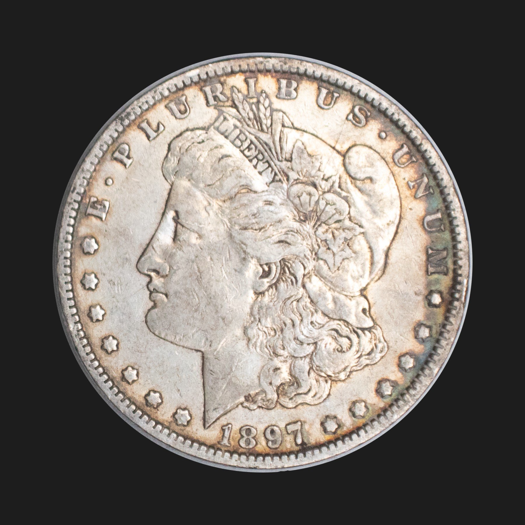 This 1897 O $1 Morgan Silver Dollar is a rare and valuable piece of American history. Minted in the U.S. Mint in New Orleans, it carries a unique "O" mint mark that distinguishes it from other Morgan Silver Dollars. This particular coin is in XF45 grade, which means it has some signs of wear but is still in excellent condition.