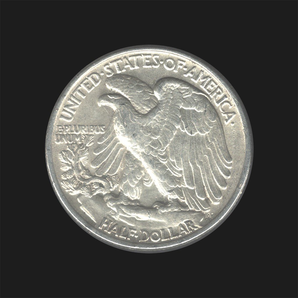 Made from .90 purity silver and weighing 12.5 grams, this Walking Liberty Half Dollar is a stunning representation of American craftsmanship. Designed by the renowned Adolph A. Weinman, the obverse of the coin features Lady Liberty walking towards the rising sun, symbolizing hope and freedom. The reverse displays a majestic bald eagle, a symbol of American strength and resilience.