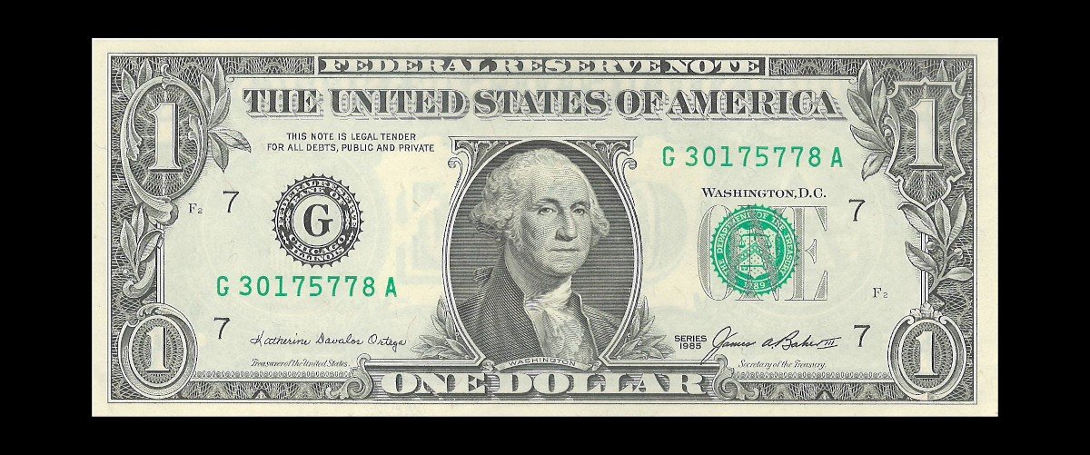 The G in the serial number indicates that this note was printed by the Federal Reserve Bank of Chicago. Each Federal Reserve Bank is assigned a letter code, and G represents Chicago. This adds a unique element to the note's collectability, making it a desirable item for currency enthusiasts and collectors. With its stunning design and pristine condition, this 1985 $1 Federal Reserve Note is sure to be a standout addition to any collection.
