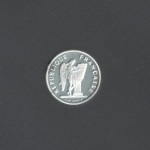 Crafted from silver, this coin features delicate engravings that symbolize the key aspects of the revolution. The obverse displays a depiction of Marianne, a national symbol of France, wearing a Phrygian cap, which became a symbol of freedom during this era. The reverse showcases the French national motto, "Liberty, Equality, Fraternity," encircled by a laurel wreath, representing victory and honor. The coin's design, along with its silver construction, makes it a cherished collectible for numismatists and history enthusiasts alike.