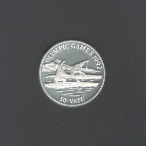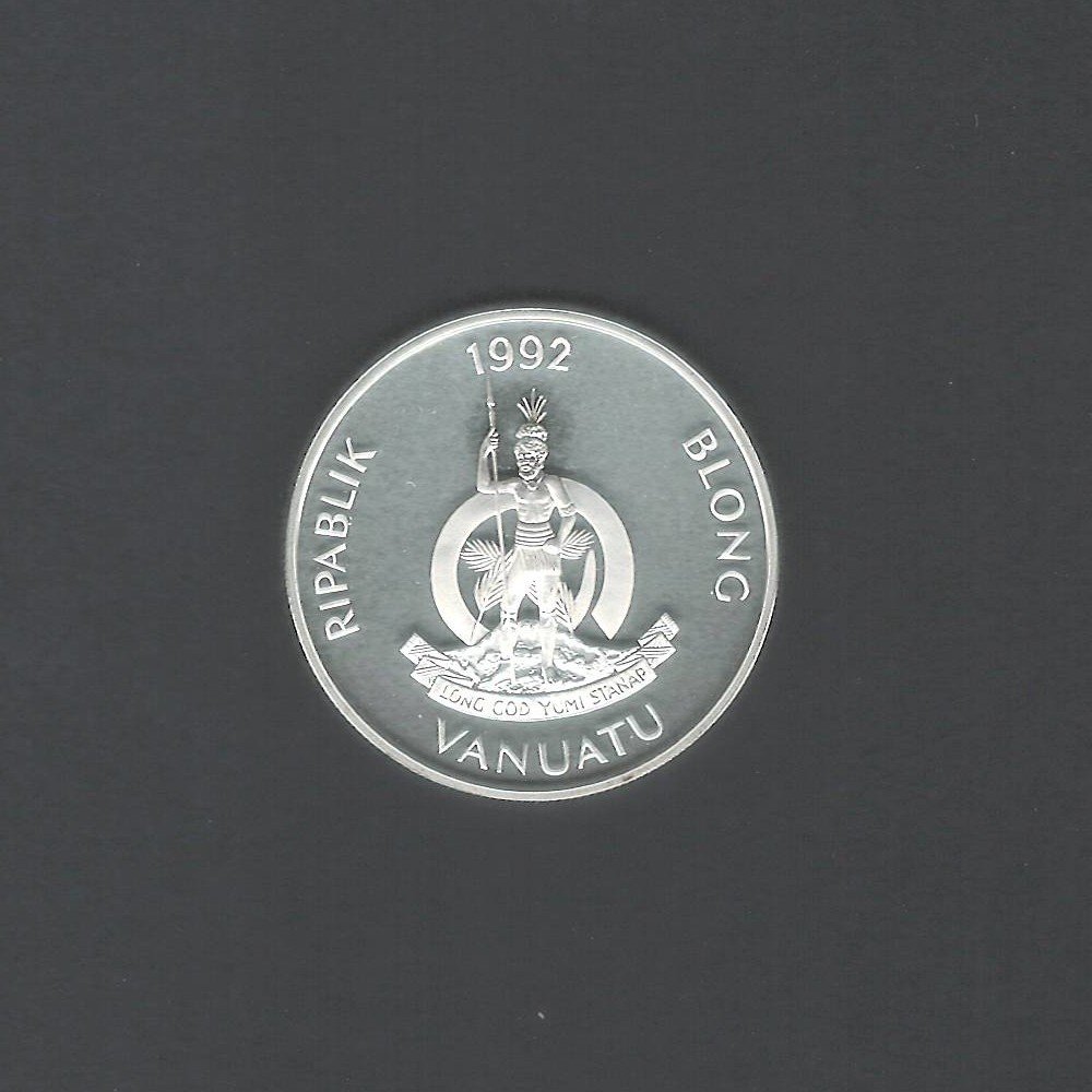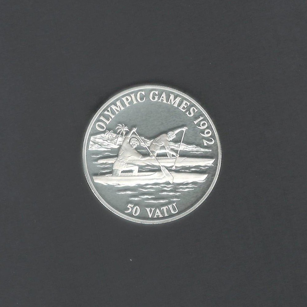 The reverse side of the coin depicts two traditional canoes, known as outriggers, gliding effortlessly through the crystal-clear waters. The scene is a representation of the importance of canoeing in Vanuatu, both as a means of transportation and a symbol of unity among its people. With its stunning design and high-quality silver content, the 1992 50 Vatu Vanuatu Canoes Silver Proof coin is a prized addition to any coin collection.