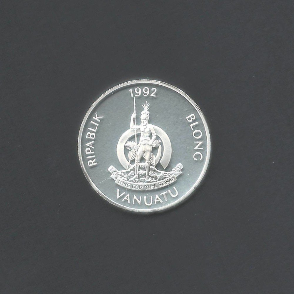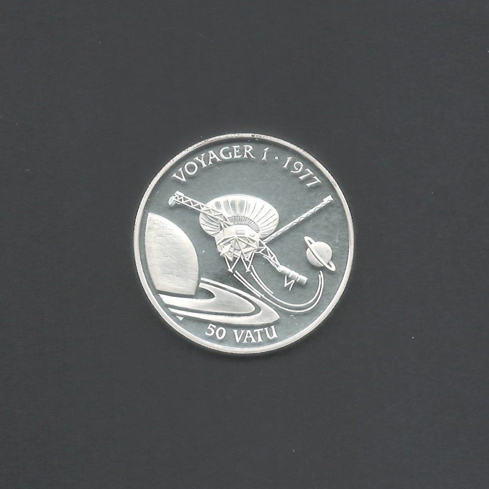 The 1992 50 Vatu Vanuatu Voyager I MS62 coin is a commemorative piece that celebrates the achievements of the Voyager I spacecraft. It was minted in Vanuatu, an island nation located in the South Pacific Ocean. The coin features a portrait of the Voyager I probe on one side, with the inscription "Voyager I" and the year 1992 below. On the reverse side, the coin displays the national emblem of Vanuatu, surrounded by the words "Republic of Vanuatu" and the denomination "50 Vatu".