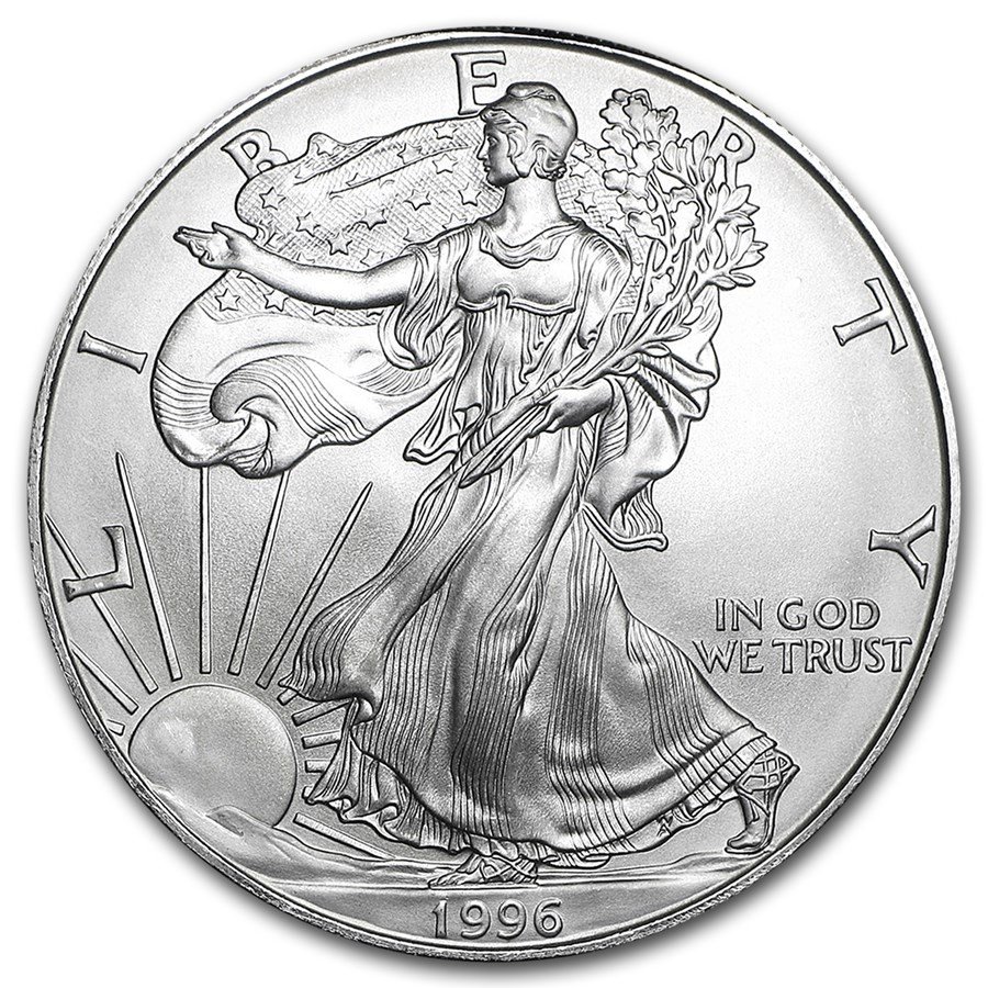 The 1996 $1 American Silver Eagle Dollar is a must-have for any serious coin collector or investor. This stunning coin showcases the iconic American Silver Eagle design, featuring a heraldic eagle on the reverse and a walking Liberty on the obverse. Crafted from 1 troy ounce of 99.9% pure silver, this coin not only holds immense historical and patriotic value but also serves as a sound investment in precious metals.