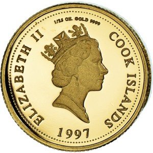 The 1997 $5 Cook Islands Princess Diana Gold B UNC MS69 .9999 Coin is a highly valuable and sought-after collectible item that showcases the iconic Princess Diana. Minted in 1997, this gold coin from the Cook Islands features a portrait of Princess Diana on the obverse, capturing her elegance and grace. With a weight of approximately 1/10 ounce and a diameter of 20mm, this coin is made from .9999 fine gold and has a brilliant uncirculated (B UNC) grade.