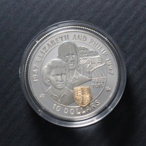 The 1997 50th Anniversary of the Marriage of Queen Elizabeth II and Prince Philip Fiji $10 Golden Wedding Anniversary coin is a stunning proof uncirculated coin that commemorates the golden wedding anniversary of the Queen and Prince Philip. This coin was issued by the Republic of Fiji to celebrate the milestone event in the royal couple's lives.