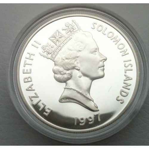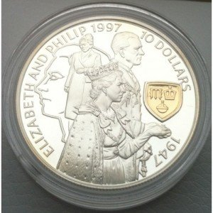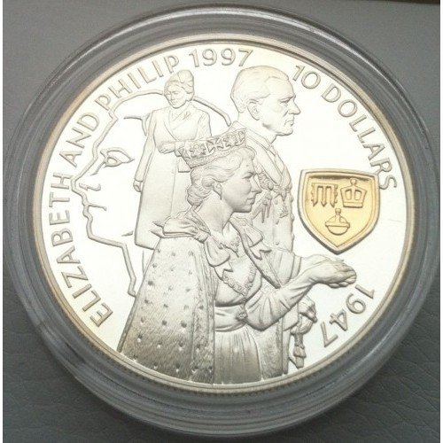 Introducing the exquisite and rare 1997 50th Wedding Anniversary $10 Queen Elizabeth II and Prince Philip Silver BU Proof Coin. This magnificent piece comes in a protective Plastic Air-Tite Capsule, ensuring its pristine condition for years to come.