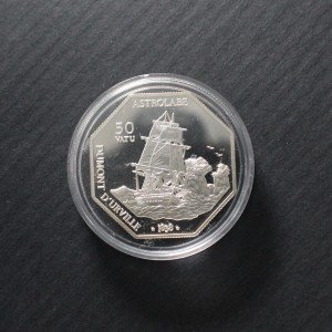 The 1999 50 Vatu Three Masted Corvette Astrolabe Ship Clipper Silver Proof UNC Coin is a beautiful and highly sought-after piece of numismatic history. The coin depicts the Astrolabe, a legendary three-masted corvette ship known for its speed and agility. The design is meticulously crafted in silver proof, giving it a stunning and detailed appearance.