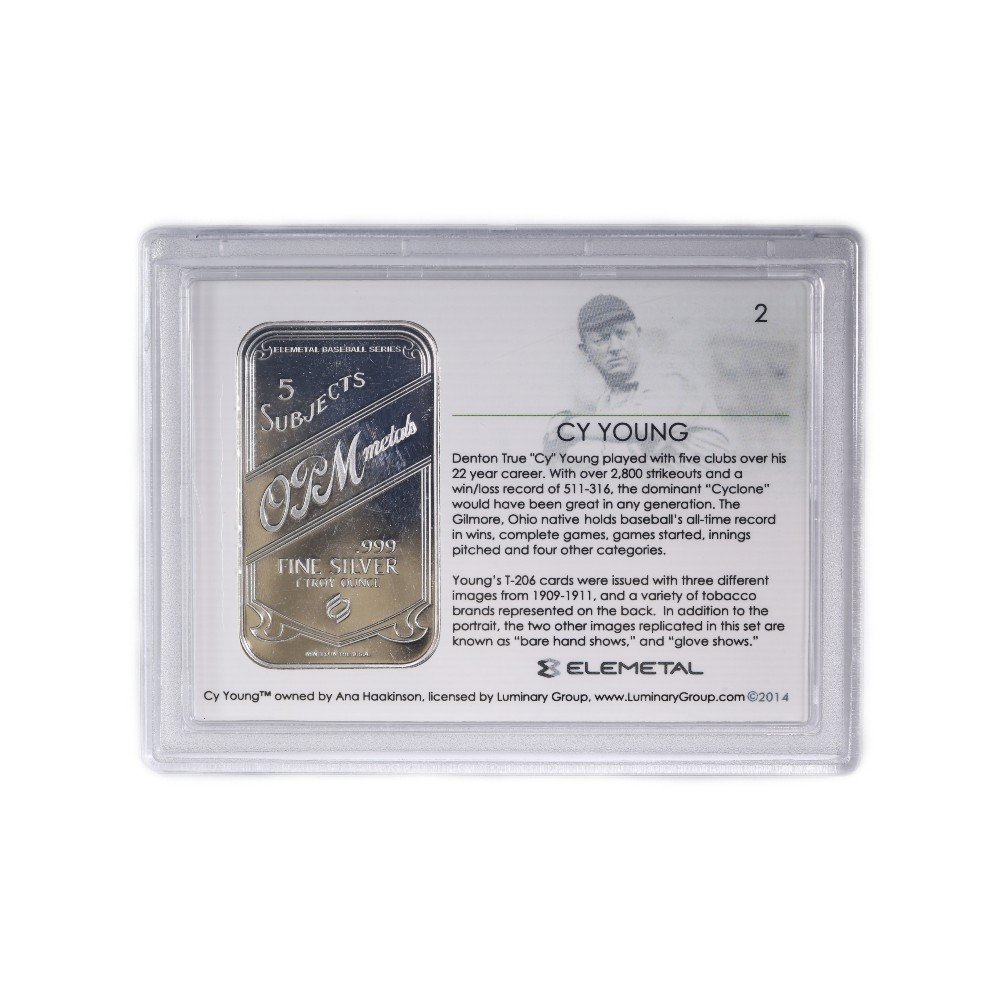 Made from .999 pure silver, this bar is not only a collector's item but also a valuable investment. It comes sealed in a special plastic type container, ensuring its pristine condition. Whether you are a fan of baseball, a lover of rare collectibles, or simply looking to diversify your portfolio, this 1oz Silver Bar T-206 Cy Young is a perfect addition.