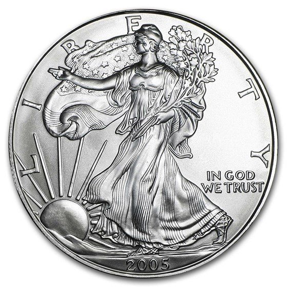 The 2005 U.S. Mint $1 American Silver Eagle Dollar is a must-have for collectors and investors alike. This stunning coin is made from pure silver, with a weight of 31.103 grams or 1 Troy ounce, ensuring its intrinsic value. The coin is in brilliant uncirculated condition, graded MS65 / BU, which means it is in excellent shape and has retained its luster.