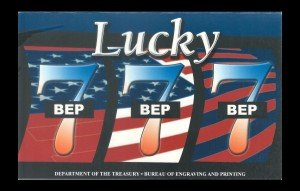 The three 777s in the serial number of this $1 bill make it stand out from the rest, as lucky 7s are often associated with good fortune and prosperity. The note's GEM UNC grade indicates that it is in flawless condition, with crisp paper and sharp corners, as if it just came off the printing press.