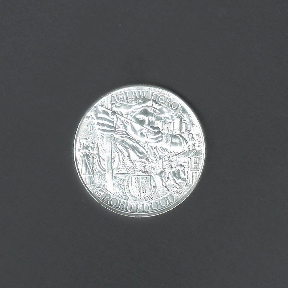 On the obverse side of the coin, you'll find the effigy of Queen Elizabeth II, along with the face value and the year of issue. The reverse side showcases Robin Hood in his classic attire, complete with his bow and arrow. The coin also features a highly-detailed forest background, symbolizing Robin Hood's infamous Sherwood Forest hideout.