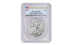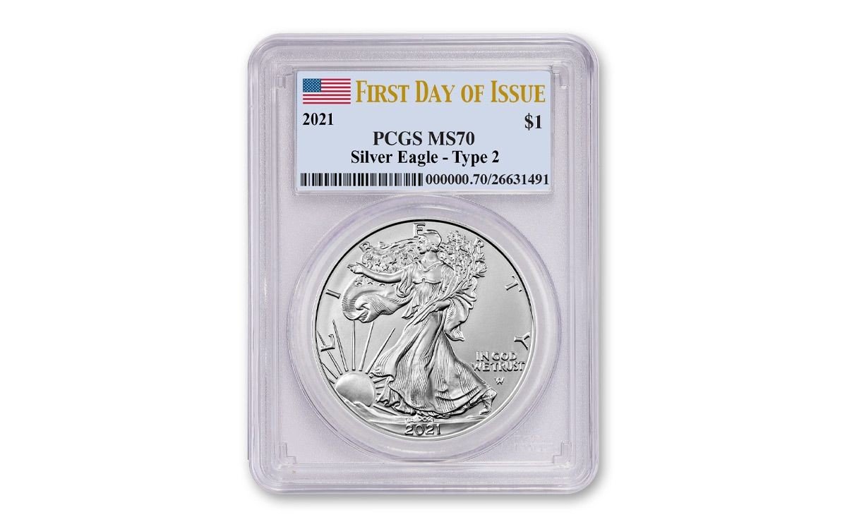 Introducing the highly sought-after 2021 Type 2 $1 American Silver Eagle Dollar Silver MS70 Certified PCGS. This stunning coin is not only graded at the highest MS70 level, but it also comes with the prestigious PCGS certification, ensuring its authenticity and quality. It is truly a must-have for any serious coin collector.