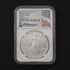 Introducing the 2022 $1 American Silver Eagle Dollar First Day of Issue! This stunning coin is crafted from pure silver with a weight of 1 Troy oz, making it a valuable addition to any collection. Certified by NGC with a grade of MS70 / BU, you can be confident in the quality and authenticity of this coin.