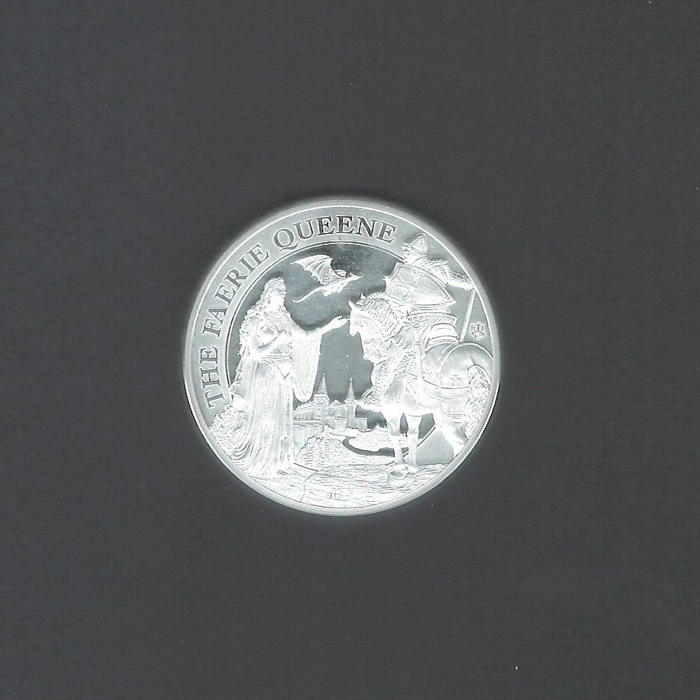 The 2022 £1 St. Helena - The Faerie Queene Proof is a stunning commemorative coin that pays homage to the epic poem "The Faerie Queene" by Edmund Spenser. The coin features a detailed depiction of the character Una, the Redcrosse Knight, and their encounter with the dragon. The design is intricately crafted, showcasing the fantastical elements of the story, including the dragon's fierce appearance and the knight's valiant stance.