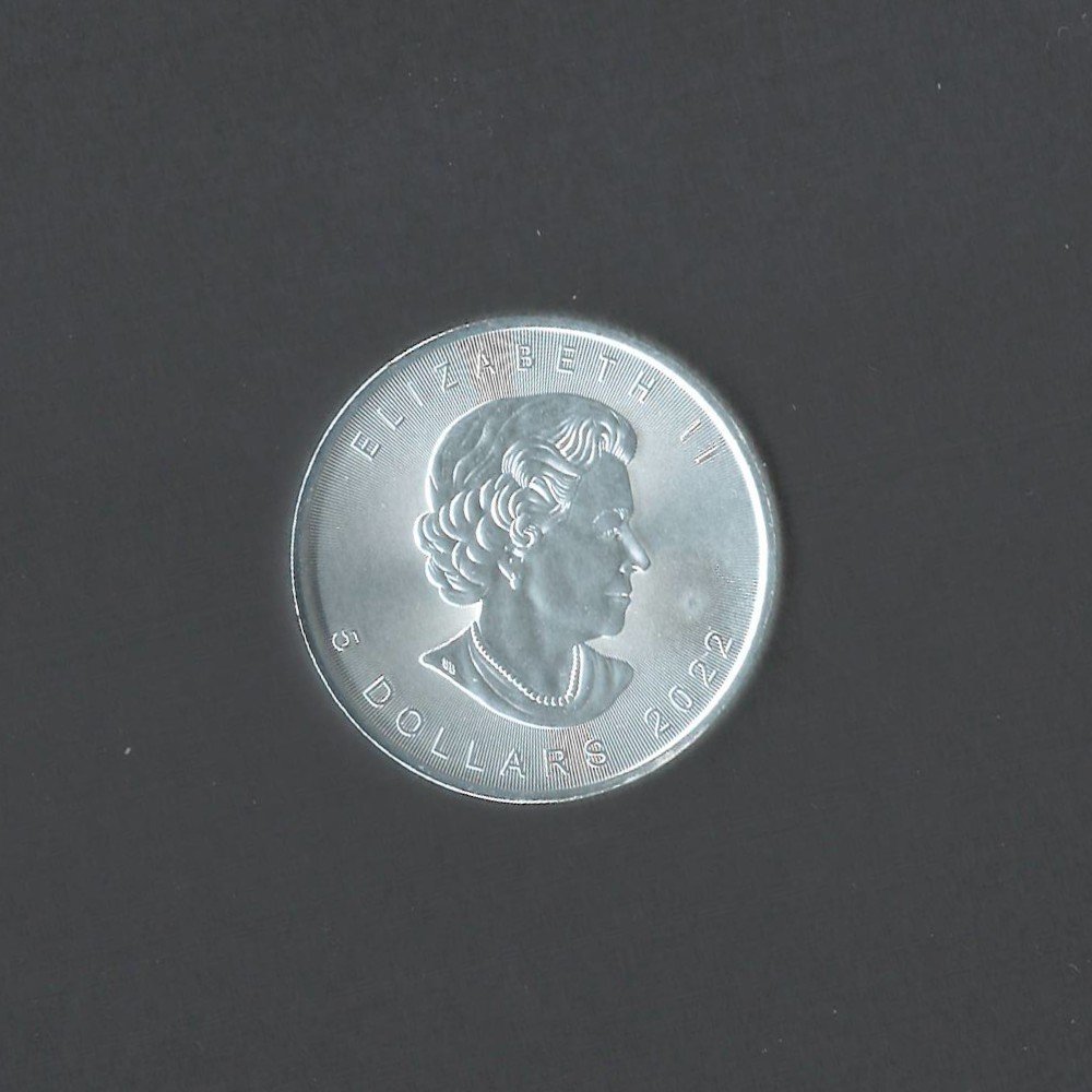 The 2022 $5 CAD Canada Maple Leaf Proof coin is a stunning commemorative piece crafted with exceptional attention to detail. Made of 9999 fine silver, this coin showcases the iconic Canadian maple leaf design, which is intricately engraved on the obverse side. The reverse side features a portrait of Queen Elizabeth II, giving it a regal touch. This limited edition proof coin is a collector's delight, designed to showcase the rich heritage and natural beauty of Canada.