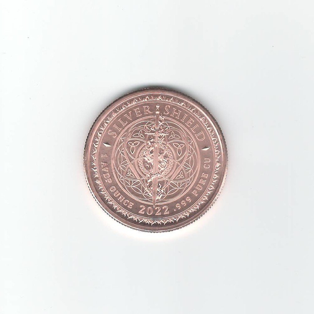 The 2022 Silver Shield Trivium Girls Copper BU Round is a stunning piece of craftsmanship that pays homage to the Trivium Girls, a symbol of knowledge, understanding, and wisdom. The round is made of pure copper, giving it a beautiful and unique aesthetic. The obverse features the three Trivium Girls, each representing one of the three liberal arts: grammar, logic, and rhetoric. They are surrounded by intricate designs and the words "Silver Shield" at the top.