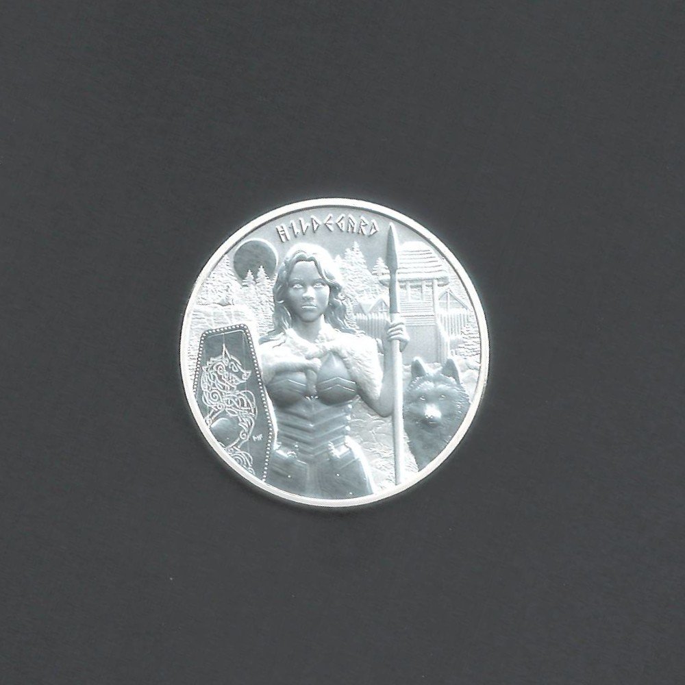 Introducing the 2022 Valkyries Germania Mint 5 Mark Hildegard Silver BU .9999 1 oz coin - a truly rare and exceptional piece that any collector would be proud to own. This coin is a part of the highly sought-after Valkyries series and is a tribute to the powerful and legendary Hildegard. With a limited mintage of only 25,000, this coin is a true rarity that will surely appreciate in value over time.