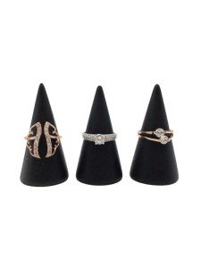 With its sleek black color, this ring display adds a touch of elegance to any room or jewelry store. The black cone design provides a unique and stylish way to showcase your rings, allowing for easy viewing and access. Whether you are a jewelry enthusiast or a professional jeweler, this ring display is the perfect addition to your collection.
