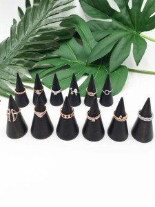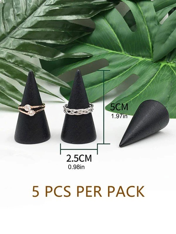 Introducing the 5pcs Wooden Ring Display, the ultimate solution for your jewelry storage needs. This package includes 5 black cone ring holders, making it perfect for organizing and showcasing your ring collection. Each holder is made of high-quality wood material, ensuring durability and longevity.
