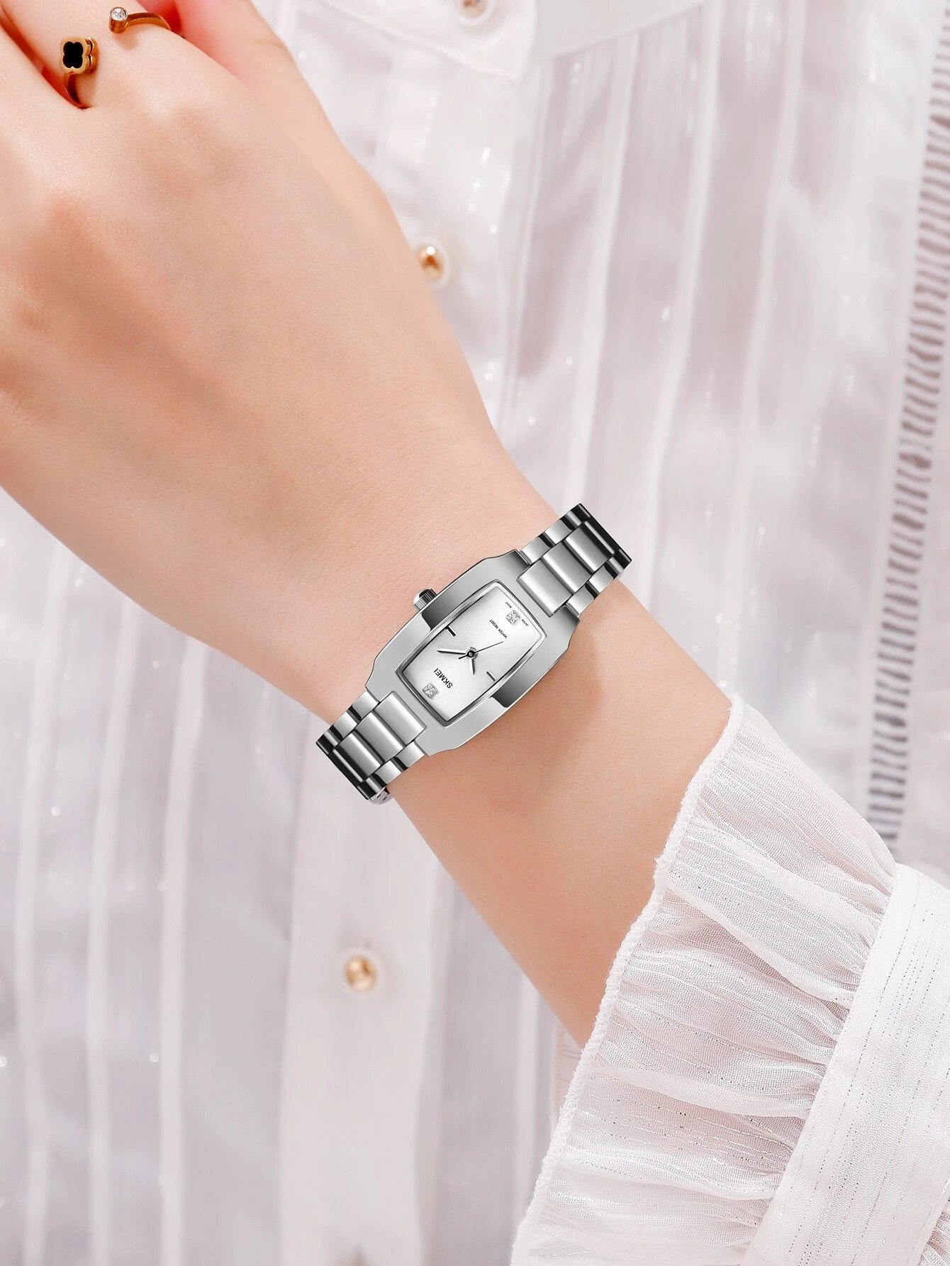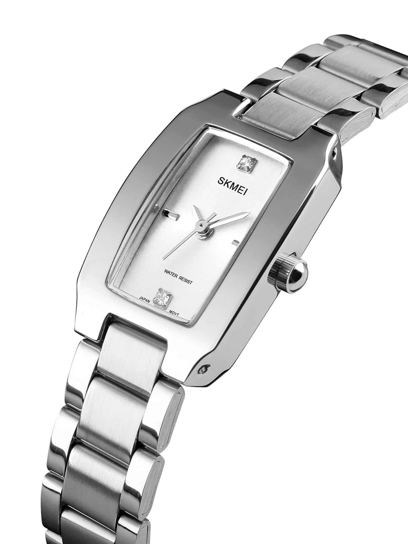 In addition to its aesthetic appeal, this watch is also water-resistant, offering functionality and durability. You can confidently wear it while washing your hands or during a light rain shower without worrying about any damage. Don't miss out on the opportunity to own this stunning Womens Stainless Steel Glass Rectangle Dial Quartz Watch in Silver. Upgrade your watch collection today and enjoy the perfect blend of style and functionality!