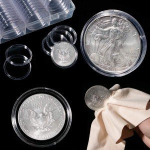 These Coin Capsules are the perfect storage solution for your valuable coins. Made from durable plastic, these coin capsules are designed to protect your silver eagles or large coins up to 41 mm in size. The clear design allows you to easily view your coins without removing them from the capsules, making it convenient and hassle-free.
