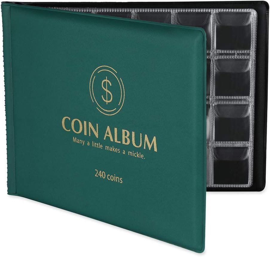 Measuring 8.27 x 6.22 x 0.71 in, this album is compact and space-efficient, yet it still offers ample room to hold up to 240 coins. Each pocket is designed to securely hold the coins in place, preventing any damage or scratches. The green color of the album adds a vibrant touch to your collection and makes it even more visually appealing.