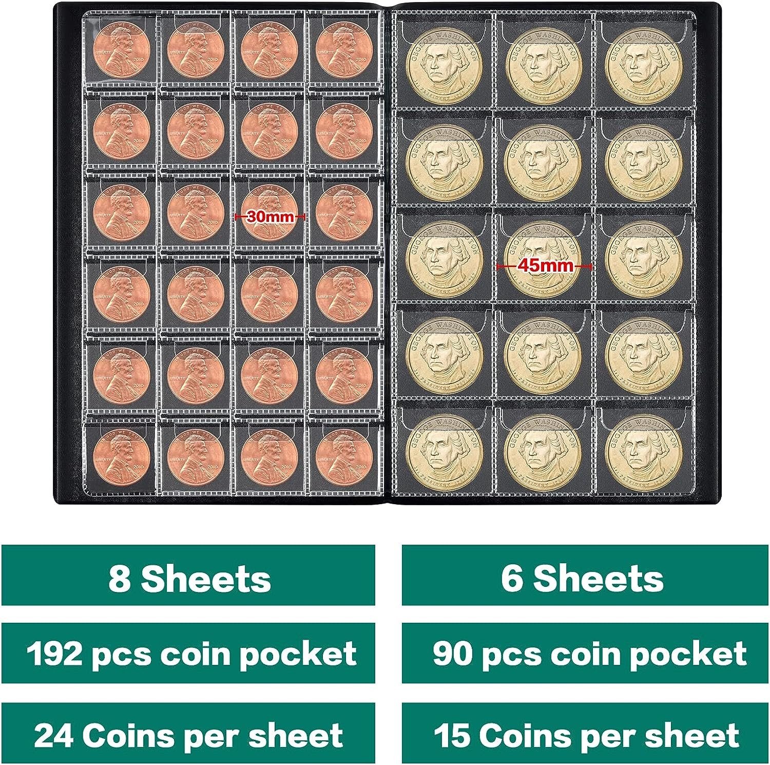 The Coin Collection Holder Album is the perfect solution to keep your coin collection organized and protected. With 282 pockets, this album provides ample space to store and display your coins. The green color adds a stylish and vibrant touch, making it a great addition to any collection.