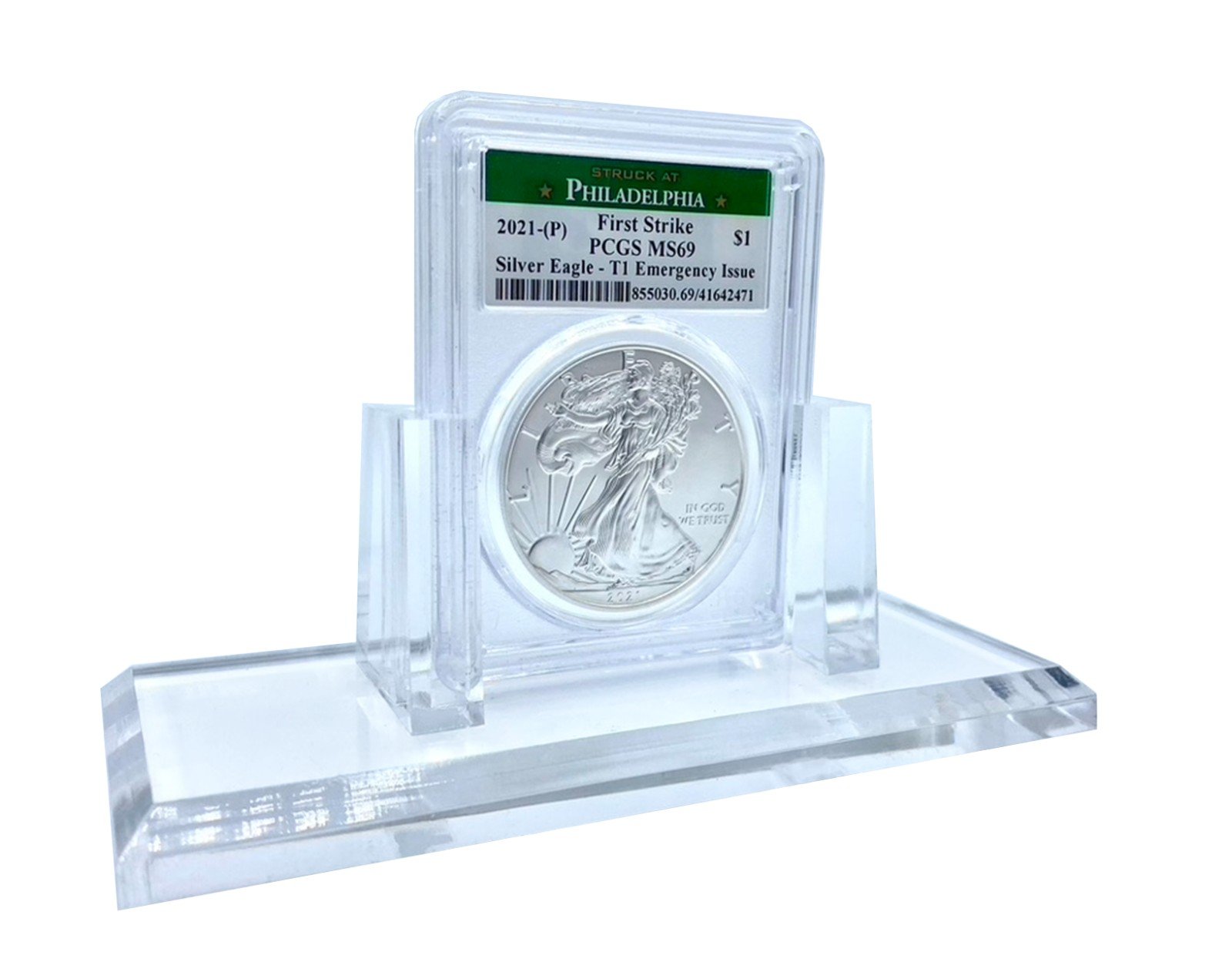The PCGS Graded Coin Display Stand for Slabs is a sleek and stylish way to showcase your prized graded coins. This display stand is specifically designed to hold PCGS slabs, which are commonly used for grading and encapsulating coins. It is made from high-quality acrylic, ensuring durability and longevity.