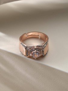 This ring is designed specifically for women, highlighting their delicate and feminine features. Its rose color adds a romantic and feminine touch to any outfit, making it perfect for occasions such as weddings, anniversaries, or even a night out with friends. The geometric shape of the hexagon adds a trendy and modern twist to this classic piece, making it a versatile accessory that can be easily paired with any outfit.