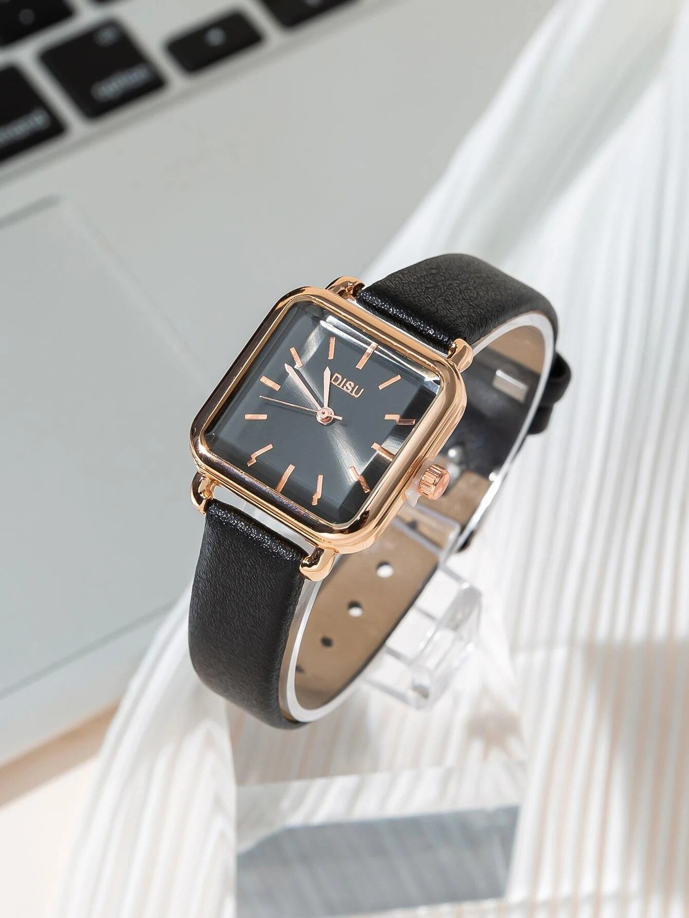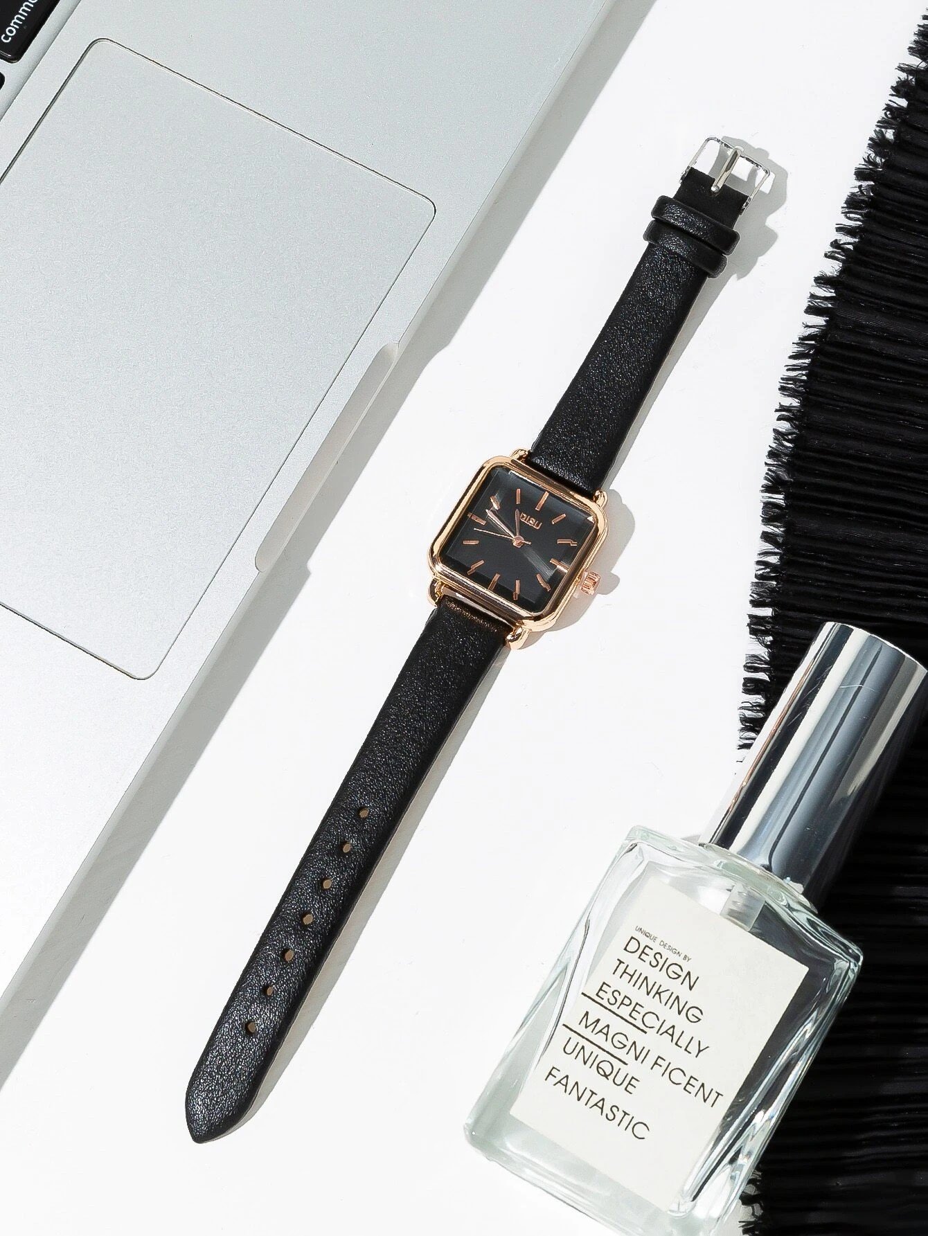 Introducing our Womens Zinc Alloy, Leather, Glass Square Pointer Quartz Watch in a sleek, black color. This watch is a must-have for every sophisticated lady out there. Made with high-quality zinc alloy, leather, and glass materials, this timepiece is built to last. Its square pointer quartz watch design adds a unique touch of elegance to any outfit.