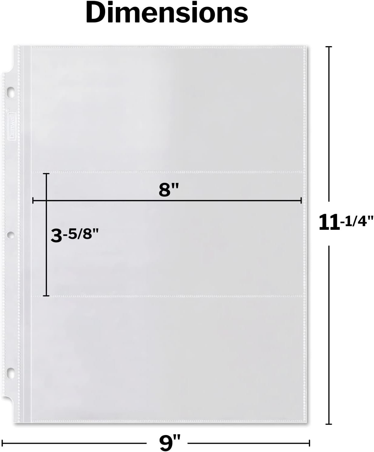 The Dunwell Binder 3-Pocket Clear Plastic Currency Pages for Bills are a must-have for anyone who wants to organize and protect their currency collection. This pack includes 25 clear plastic currency pages that are designed to fit into standard three-ring binders. The three-pocket design allows you to easily slide bills into each pocket, keeping them flat and preventing damage.