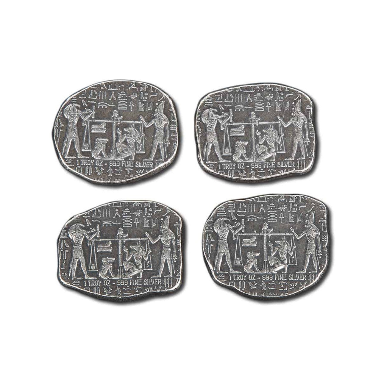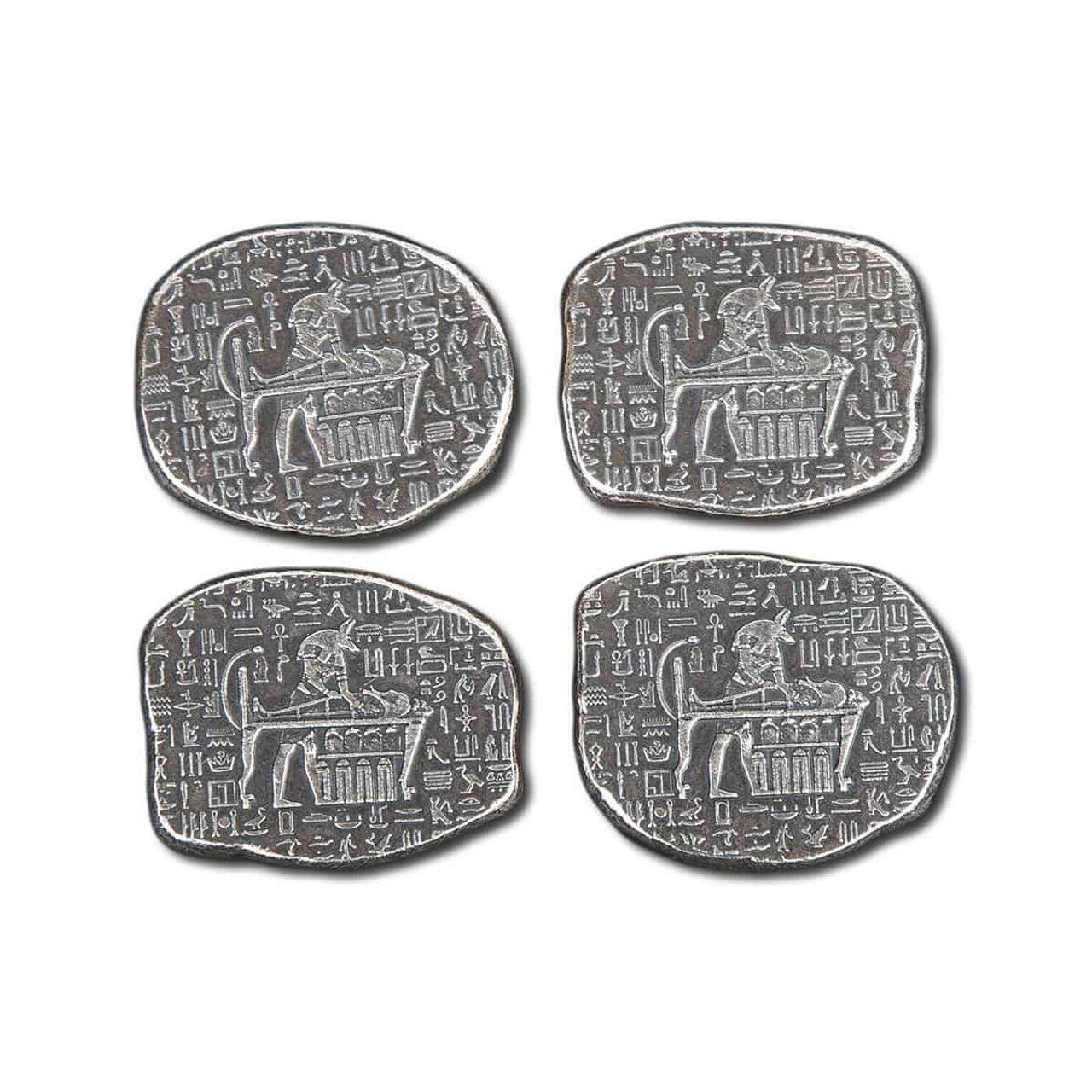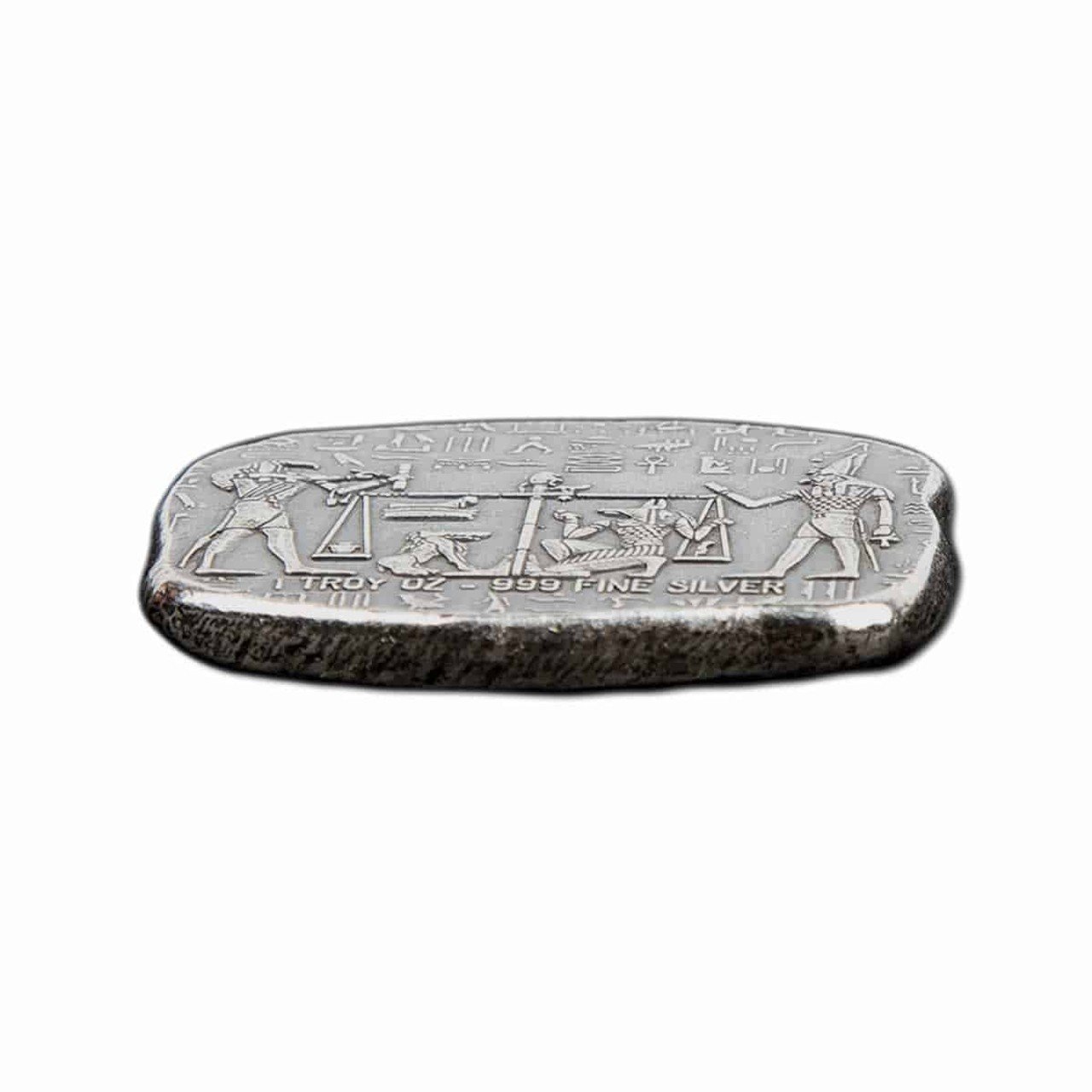 Introducing the Egyptian Relic Bar Silver, a stunning piece that combines the charm of ancient history with the elegance of fine silver. Crafted with care, these new bars are purposely made to resemble ancient stone relics chipped off the side of a tomb. Each bar is unique, with its hand-struck off-center design and an application of an "antique" finish.