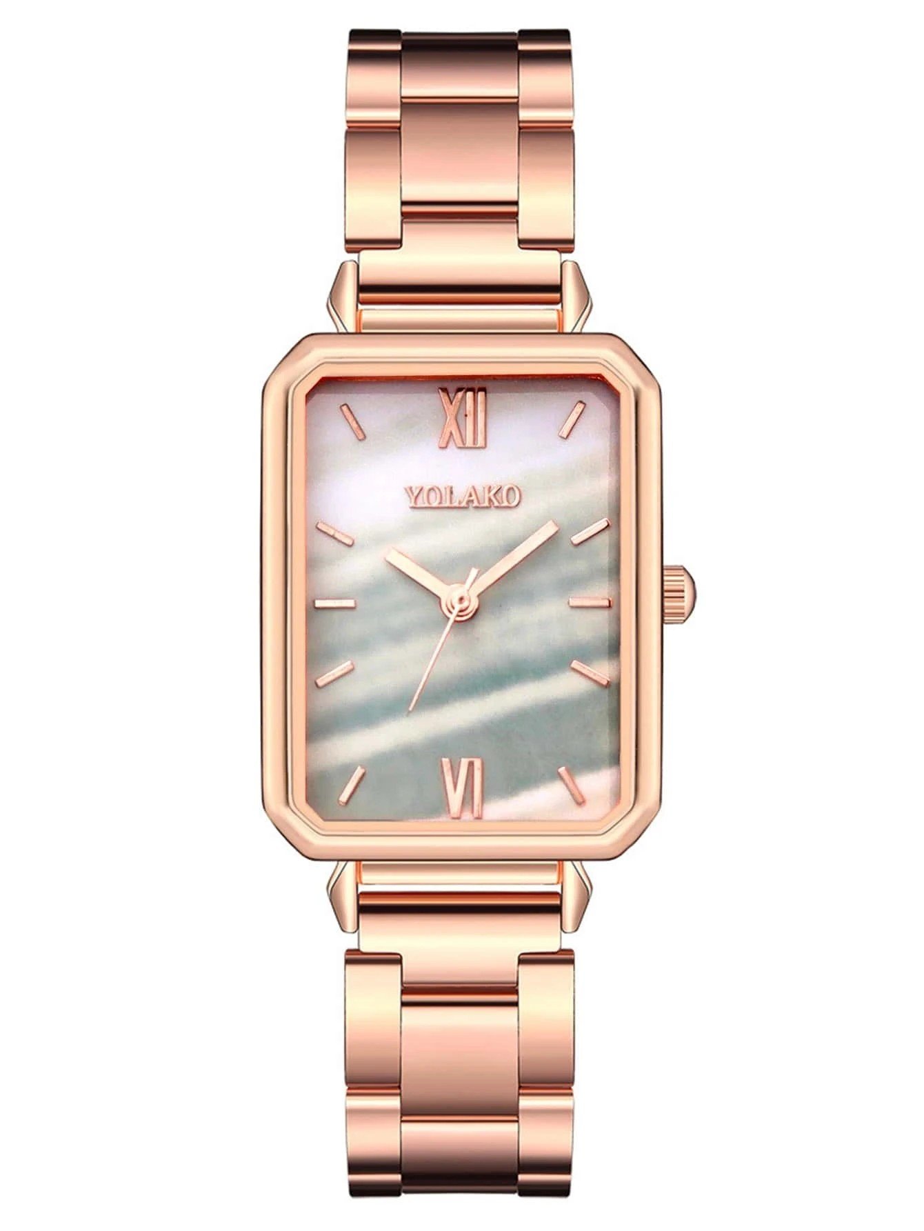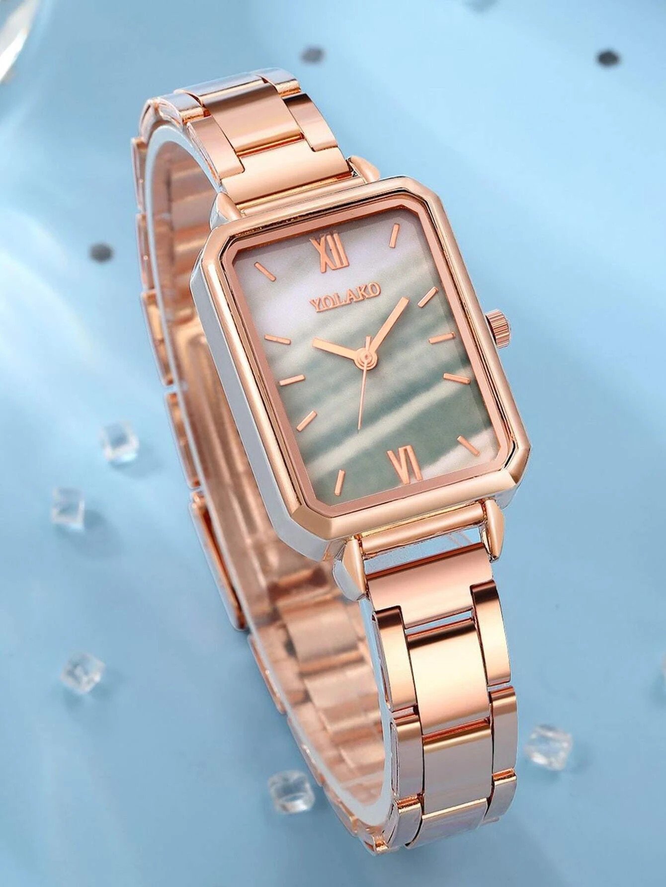 The rectangular Roman dial adds a touch of sophistication to any outfit, whether you're dressing up for a special occasion or simply running errands. With its quartz movement, you can trust that this watch will keep accurate time, ensuring you never miss a beat.