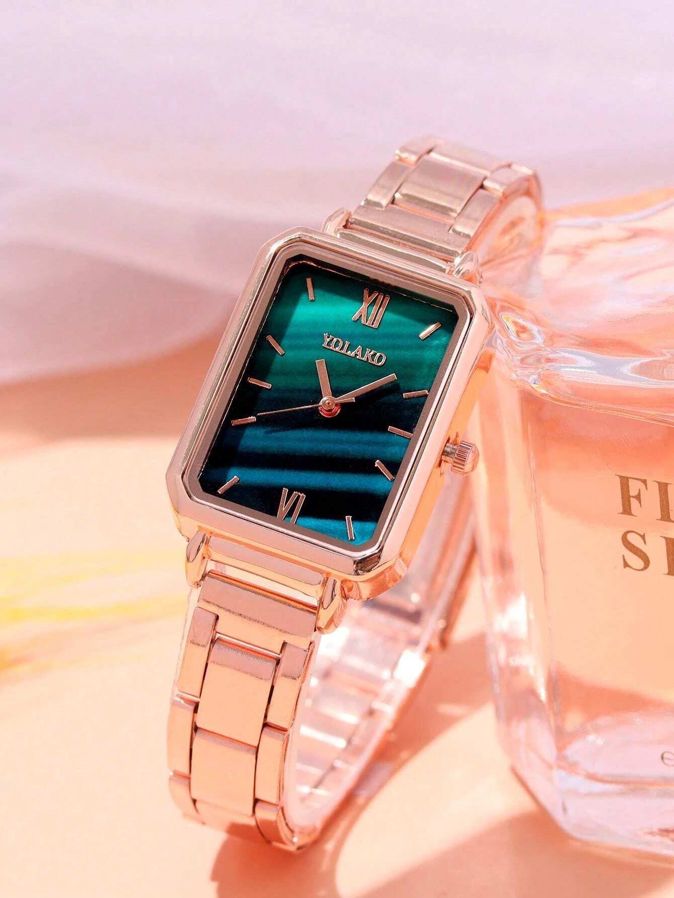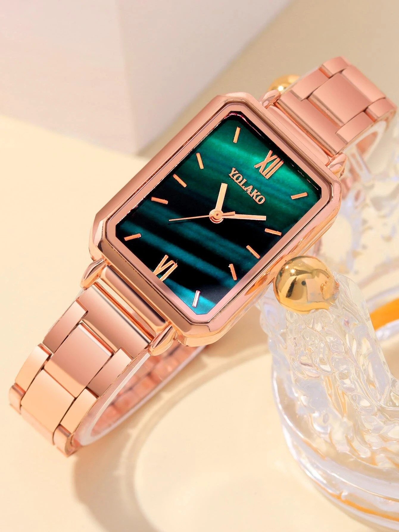 Introducing the Womens Zinc Alloy, Glass Fashion Square Dial Quartz Watch in Rose. Designed for women who value both style and functionality, this watch is the perfect accessory to complete any outfit. With its square dial and sleek rose-colored design, it exudes elegance and sophistication.