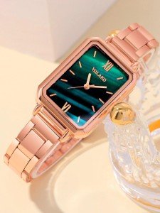 The Womens Zinc Alloy, Glass Fashion Square Dial Quartz Watch is not just a timepiece, but a fashion statement. Its rose color adds a touch of femininity to any ensemble, making it perfect for any occasion. Don't miss out on this stylish and practical accessory - get your hands on this stunning watch today!