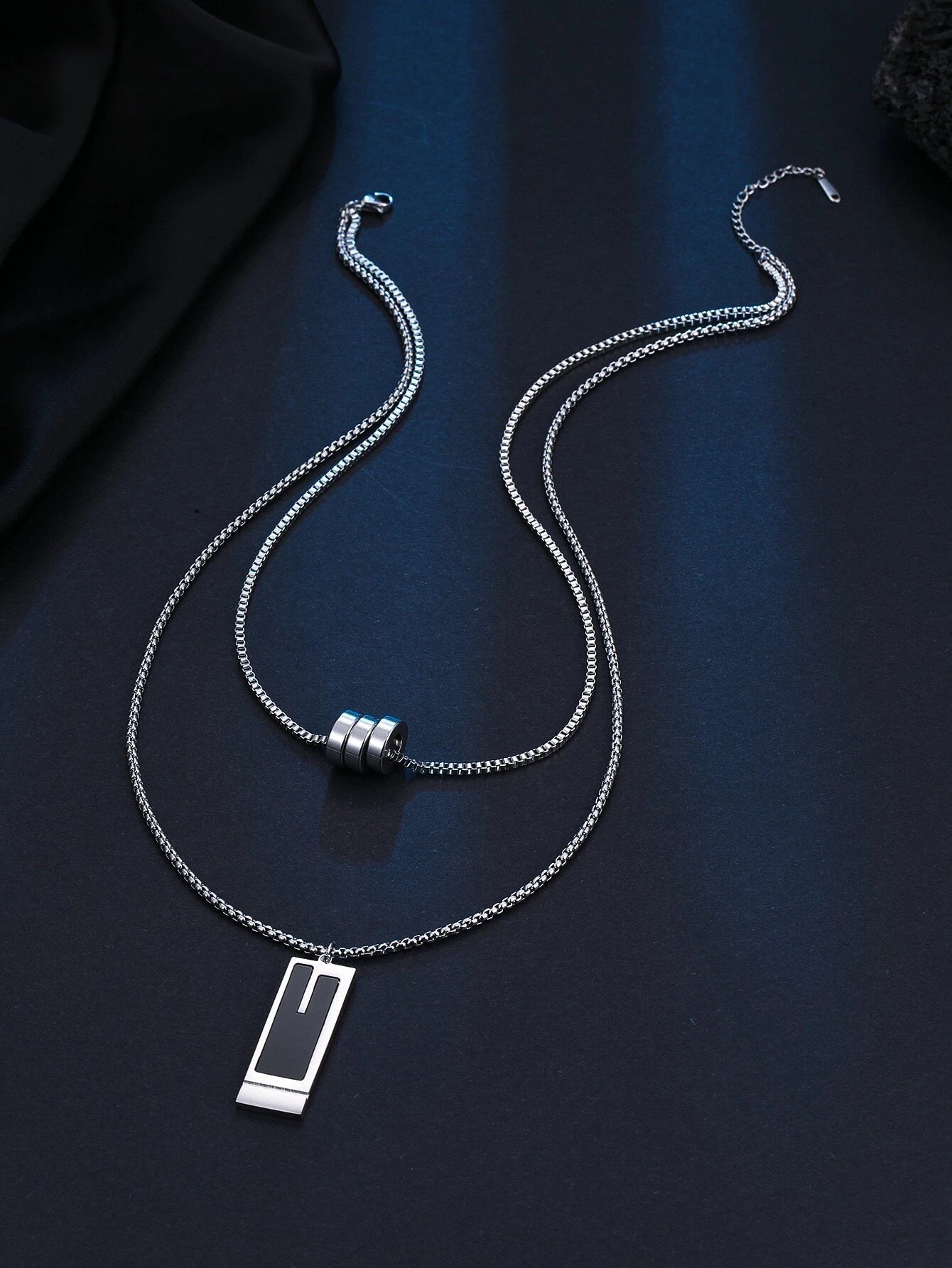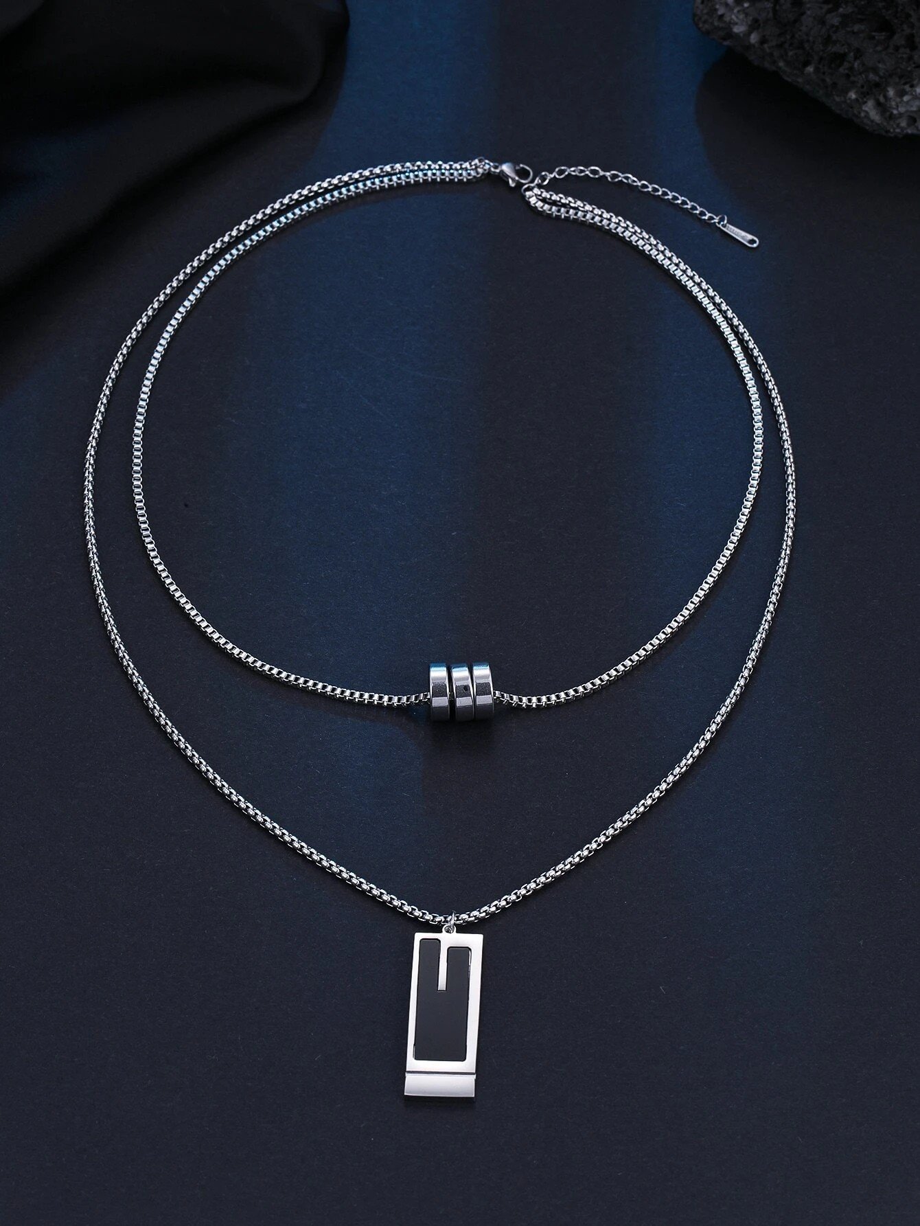 Introducing the Unisex Geometric Charm Layered Necklace, the perfect accessory for fashion-forward individuals who appreciate simplicity and style. Crafted in a sleek silver color, this necklace effortlessly adds a touch of elegance to any outfit. Designed with a unique geometric charm layered design, it exudes a contemporary and trendy vibe that is perfect for both men and women.