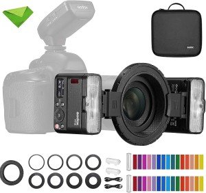 The Godox MF12-K2 also offers a variety of additional features, including high-speed sync (up to 1/8000s), an adjustable flash coverage range, and a stroboscopic flash mode. The flash heads can be easily rotated and tilted to achieve desired lighting angles, and the unit can be triggered wirelessly using a compatible transmitter.