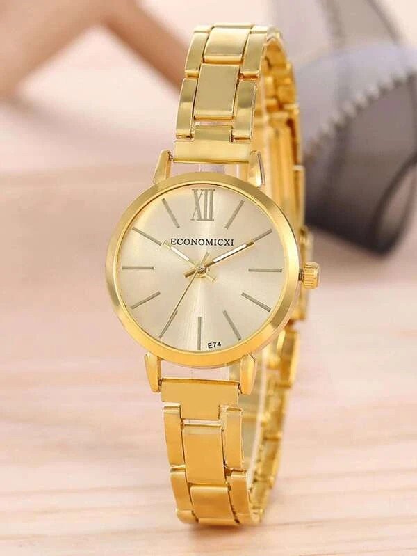 The beautiful gold color adds a touch of sophistication and elegance to your overall look. The minimalist round quartz watch dial offers a clean and uncluttered appearance, making it perfect for both casual and formal occasions. The included bracelet complements the watch perfectly, adding a touch of elegance and completing your ensemble effortlessly.