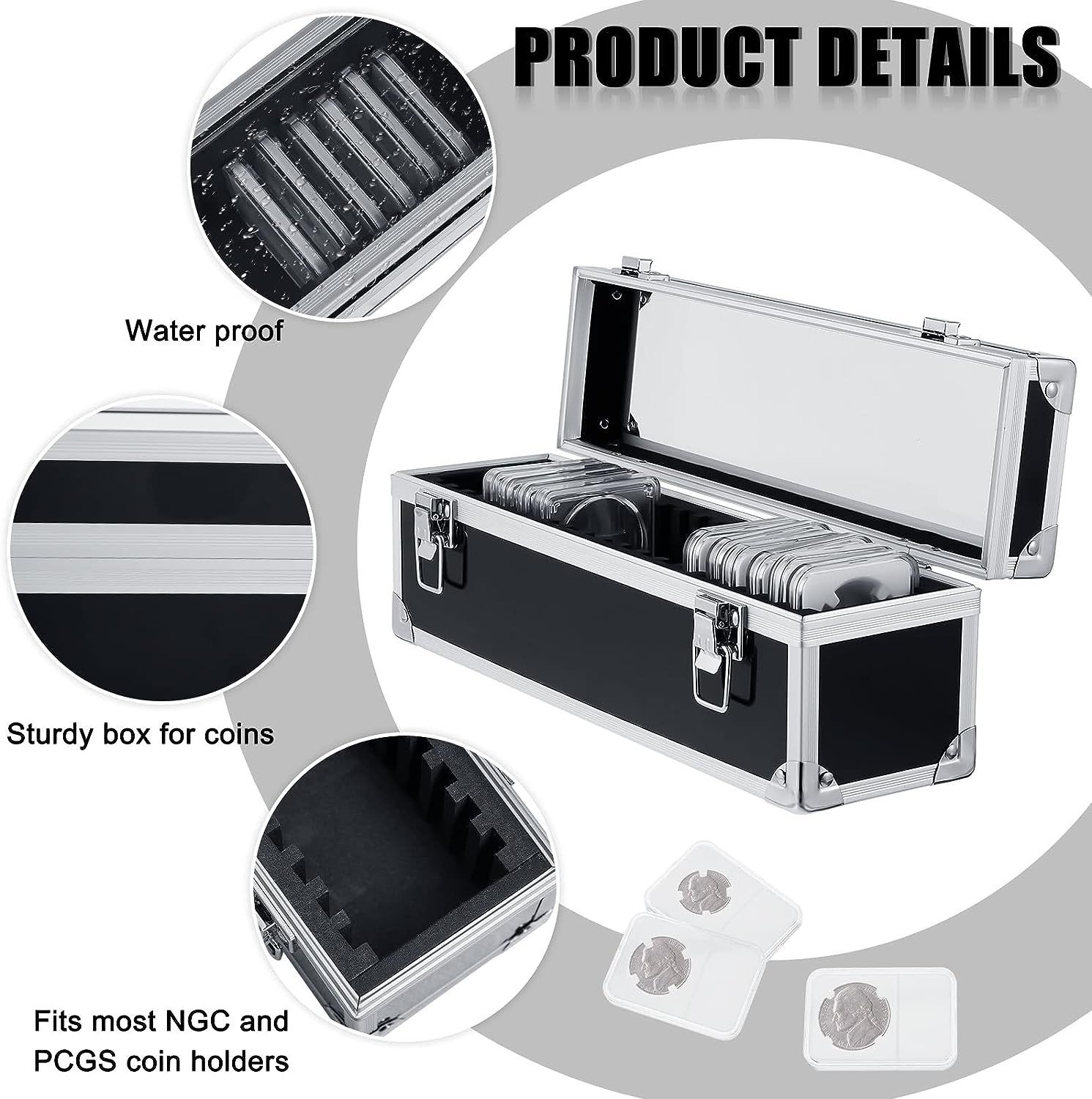 With dimensions of 14.84 x 5.94 x 3.7 inches, this storage box can hold up to 20 slabs, making it perfect for both small and large collections. The lightweight design, weighing only 1.25 pounds, makes it easy to transport and store. Don't let your precious coin slabs get damaged or lost - invest in this Nice Aluminum & Black Coin Slab Storage Box with Push Lock Latch today to keep them organized, protected, and looking great.