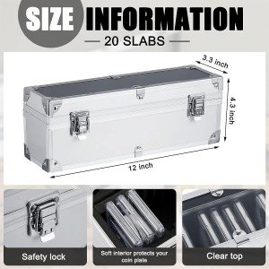 The push lock latch ensures that your coin slabs are securely held in place, giving you peace of mind knowing that your collection is safe and protected. The box has a capacity to hold up to 20 slabs, allowing you to conveniently store and organize your coins.