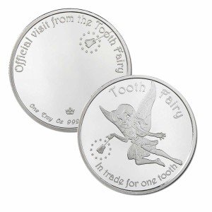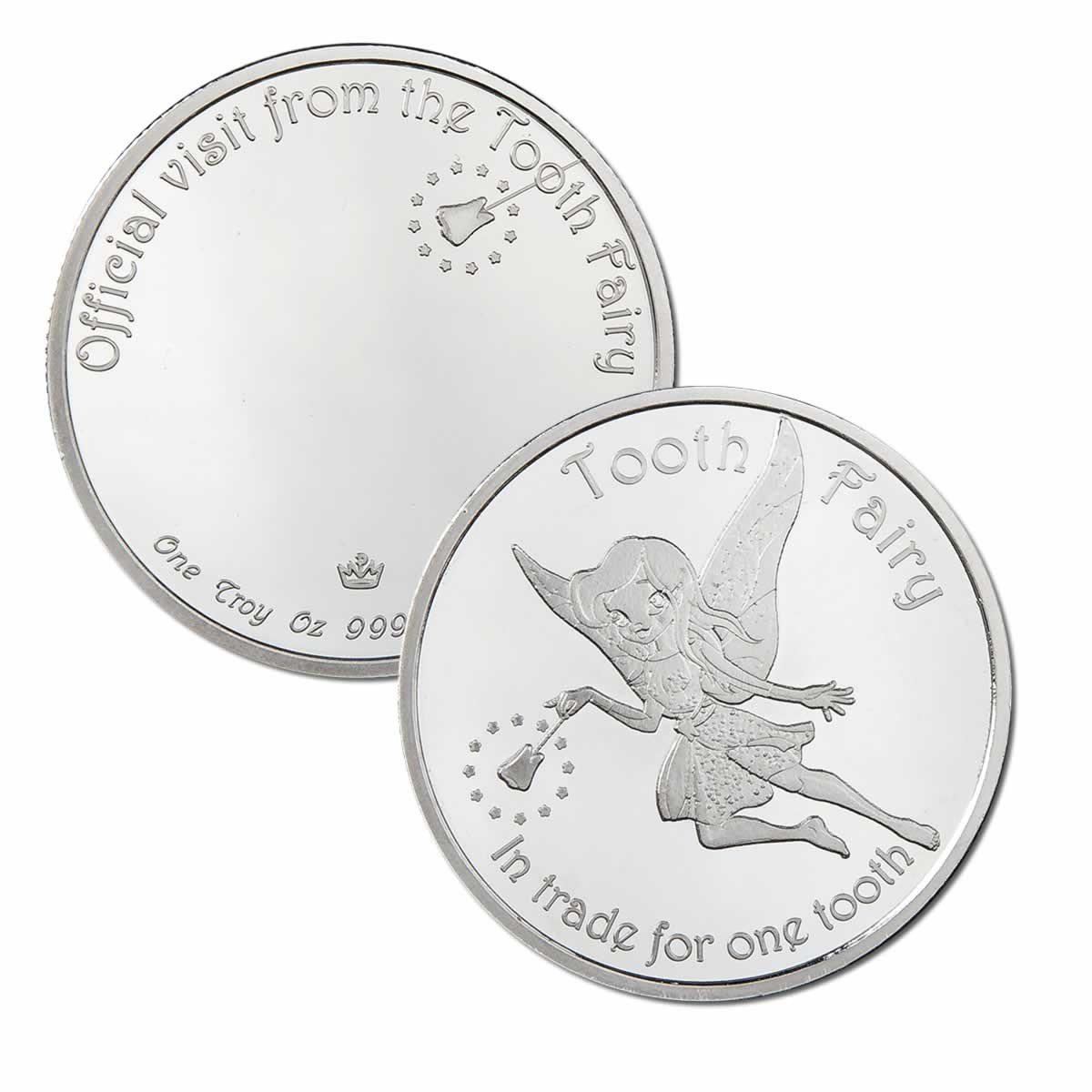 Introducing the "Official Visit from the Tooth Fairy! Silver NEW .999 1 Troy oz" round by Monarch Precious Metals. This unique piece has a special significance as it serves as not only a precious metal investment but also a delightful keepsake from the Tooth Fairy herself!