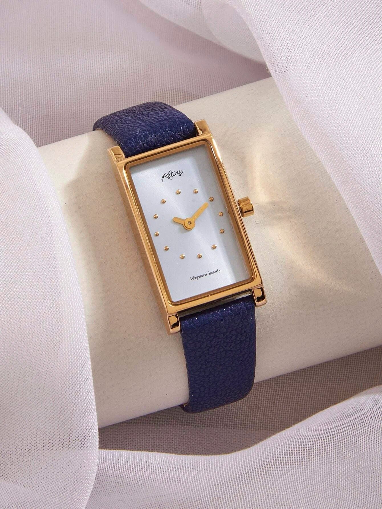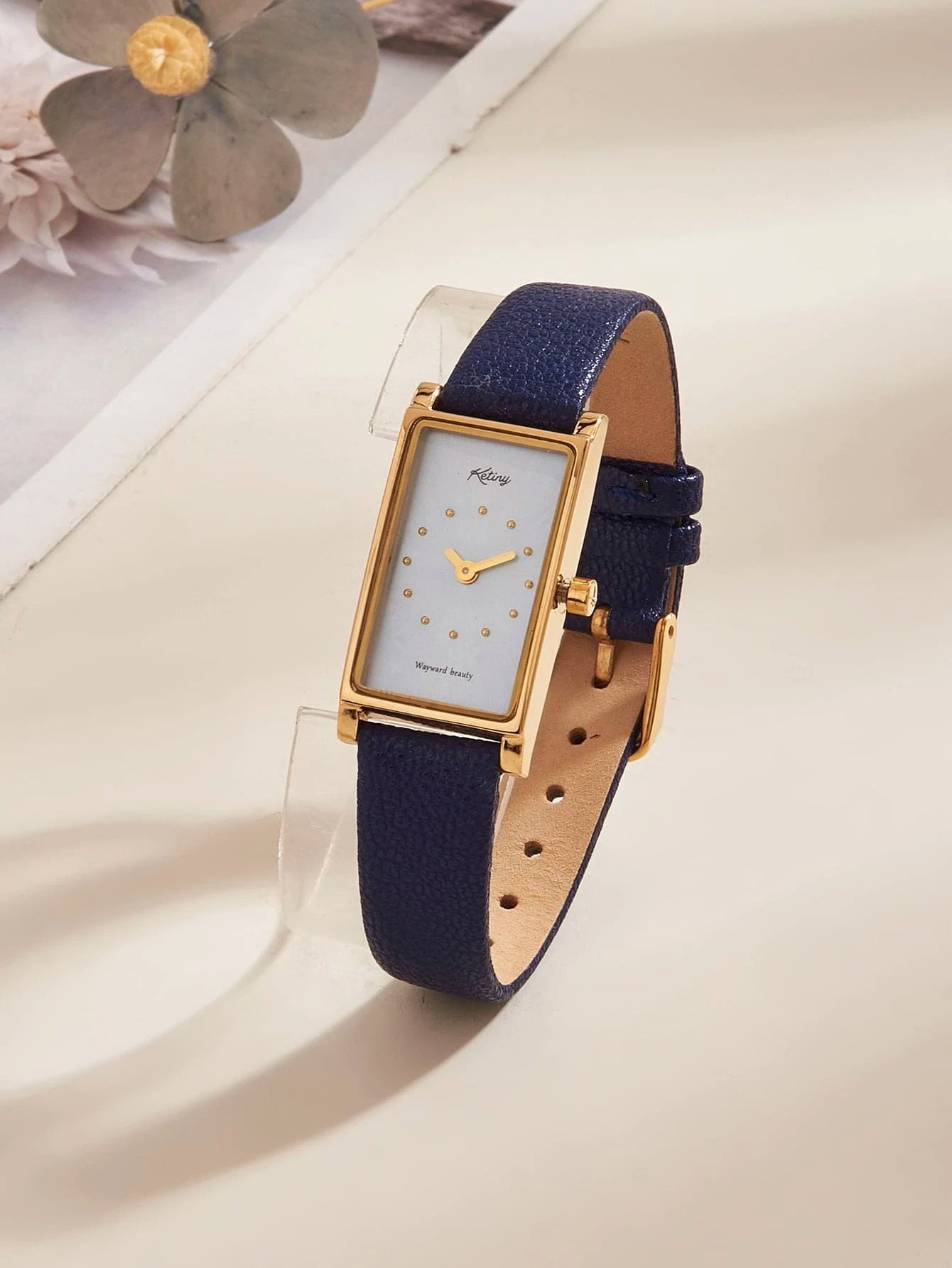This Women's Zinc Alloy, PU Leather, Glass Rectangle Pointer Quartz Watch in dark blue is the perfect accessory for any stylish woman. With its one-size design, it can easily fit any wrist comfortably. The dark blue color adds a Suttle pop of color to any outfit, making it a versatile piece for everyday wear.