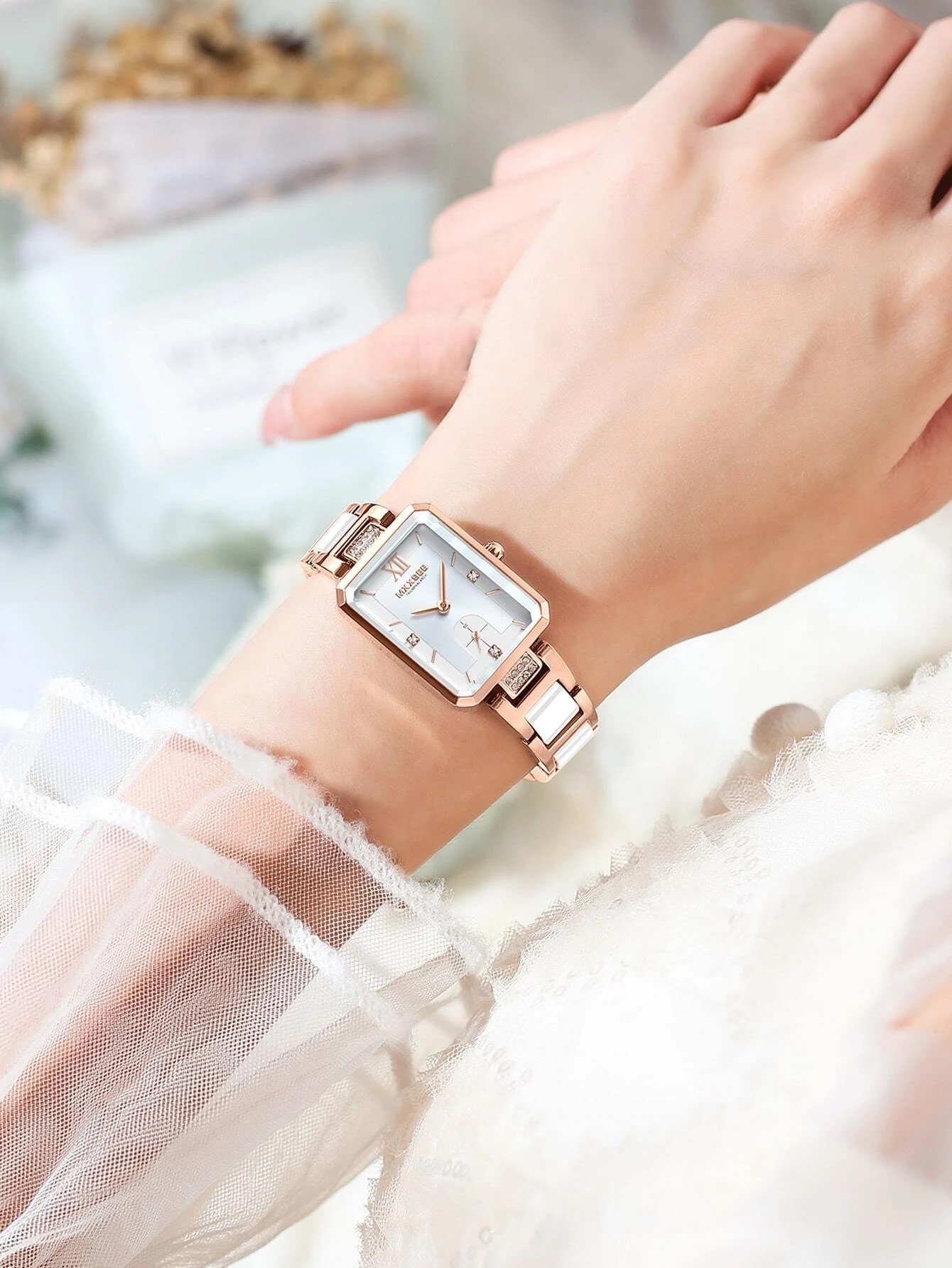 Featuring a rectangular shape with a rhinestone decoration, this watch is a true statement piece. The pointer quartz movement ensures accurate timekeeping, making it reliable in any situation. The one-size fits all design ensures a comfortable and secure fit for any woman's wrist.