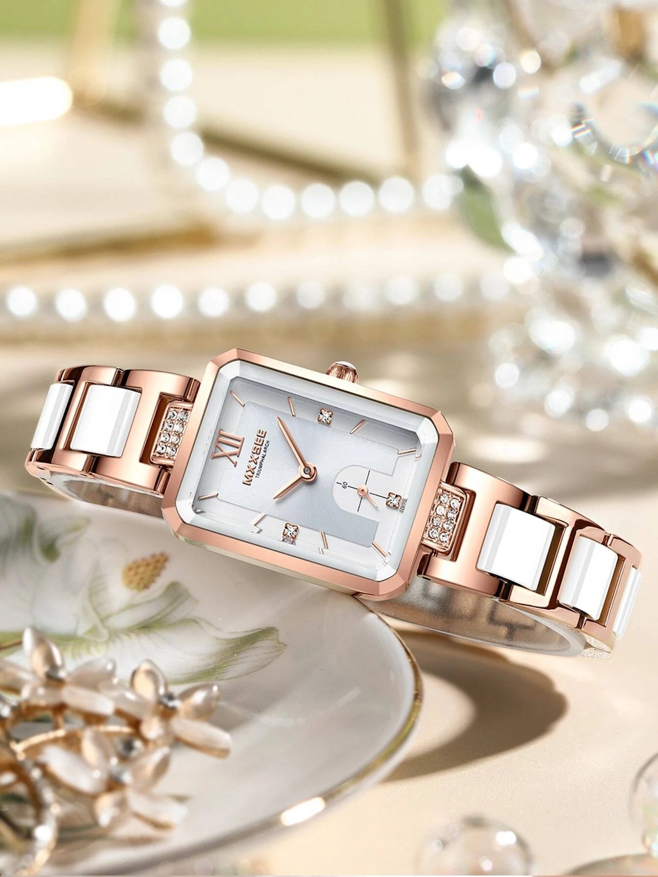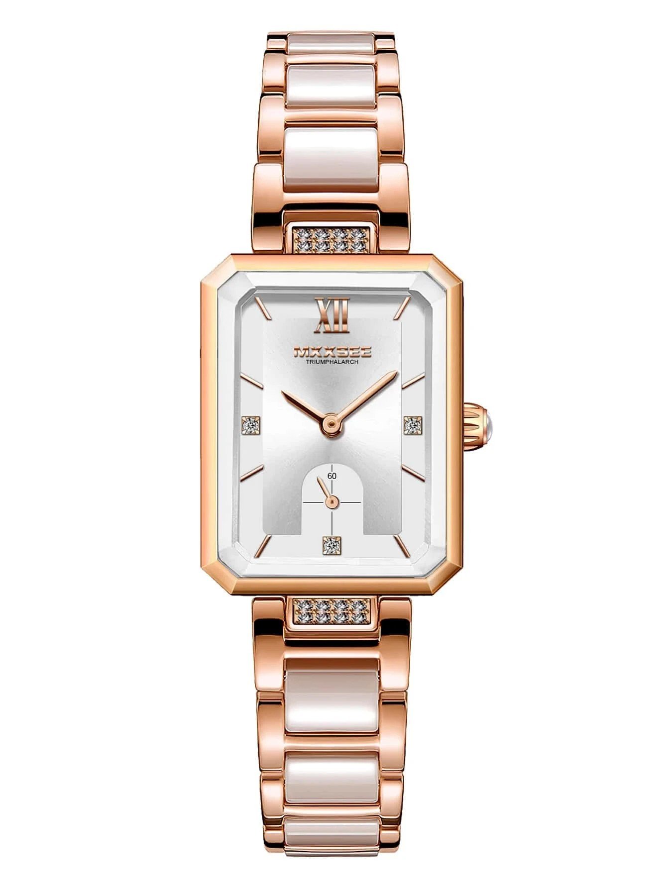 Introducing the Womens Zinc Alloy, Stainless Steel, Glass Rhinestone Decor Rectangle Pointer Quartz Watch in the alluring color of Rose. Designed specifically for women, this watch exudes elegance and sophistication. The combination of zinc alloy, stainless steel, and glass materials ensures durability and long-lasting wear.